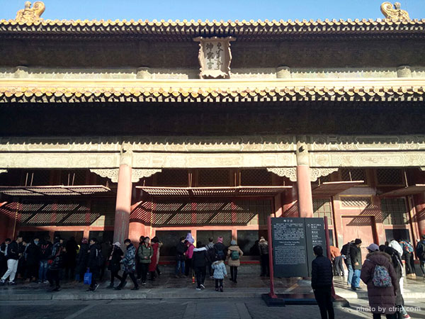 The Palace of Earthly Tranquility (Kunning Palace) is a double-eaved building, nine bays wide and three bays deep. In the Ming dynasty, It was the residence of the Empress. The name of Palace of Earthy Tranquility in Chinese represents the combination of masculine and feminine.